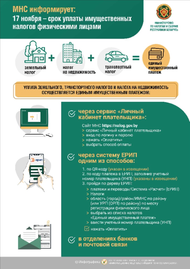 • Ознакомится с суммой единого имущественного платежа в ЕРИП и произвести уплату.