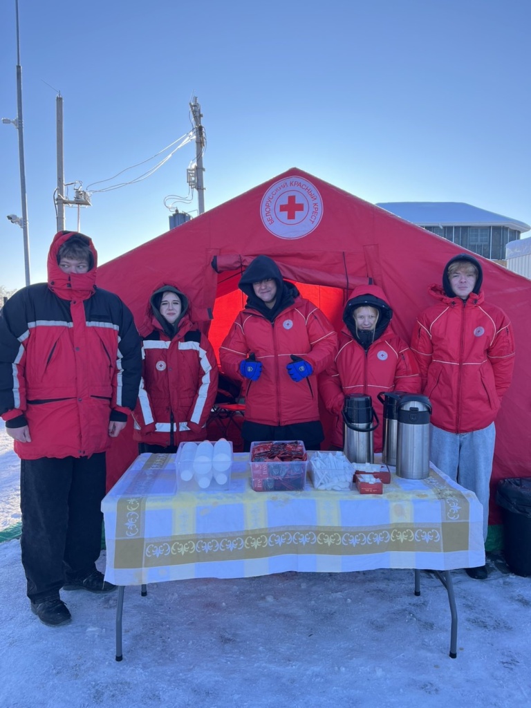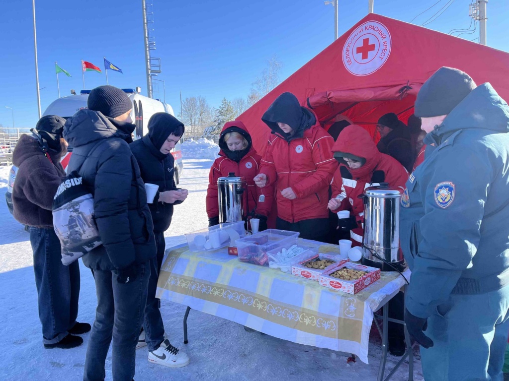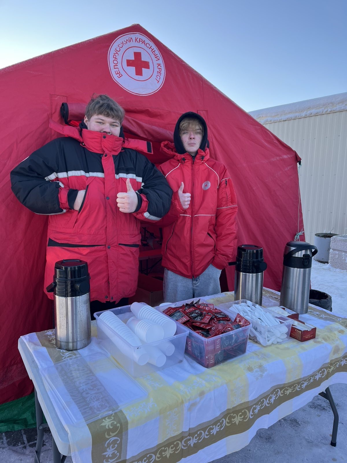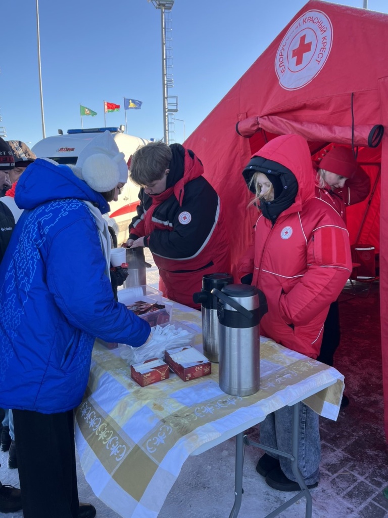 Волонтеры колледжа совместно с районной благотворительной организацией «Красный Крест» поили чаем участников Гомельской городской лыжни.
