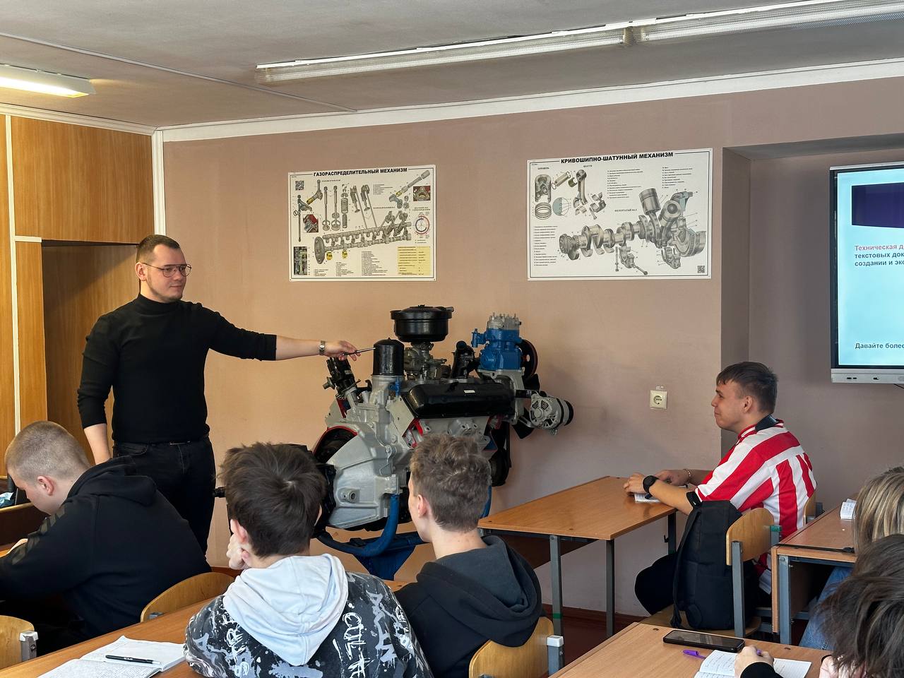Учащиеся шаг за шагом исследовали один из ключевых механизмов автомобиля — систему смазки двигателя. Урок стал настоящим путешествием от базовых принципов к реальным действиям.